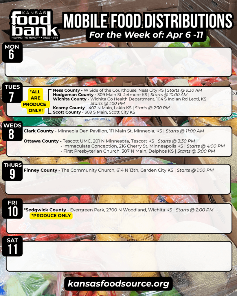 For a complete listing of partner agencies across Kansas, visit kansasfoodsource.org and click on your county to find assistance near you.
