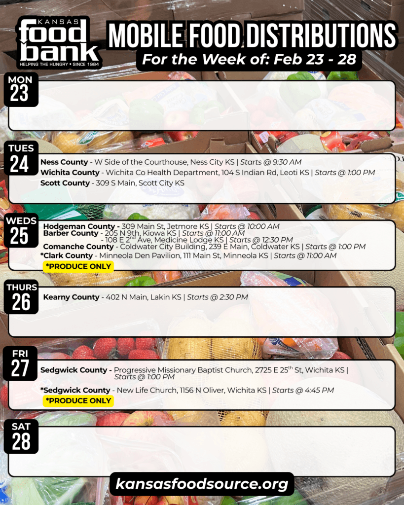 For a complete listing of partner agencies across Kansas, visit kansasfoodsource.org and click on your county to find assistance near you.