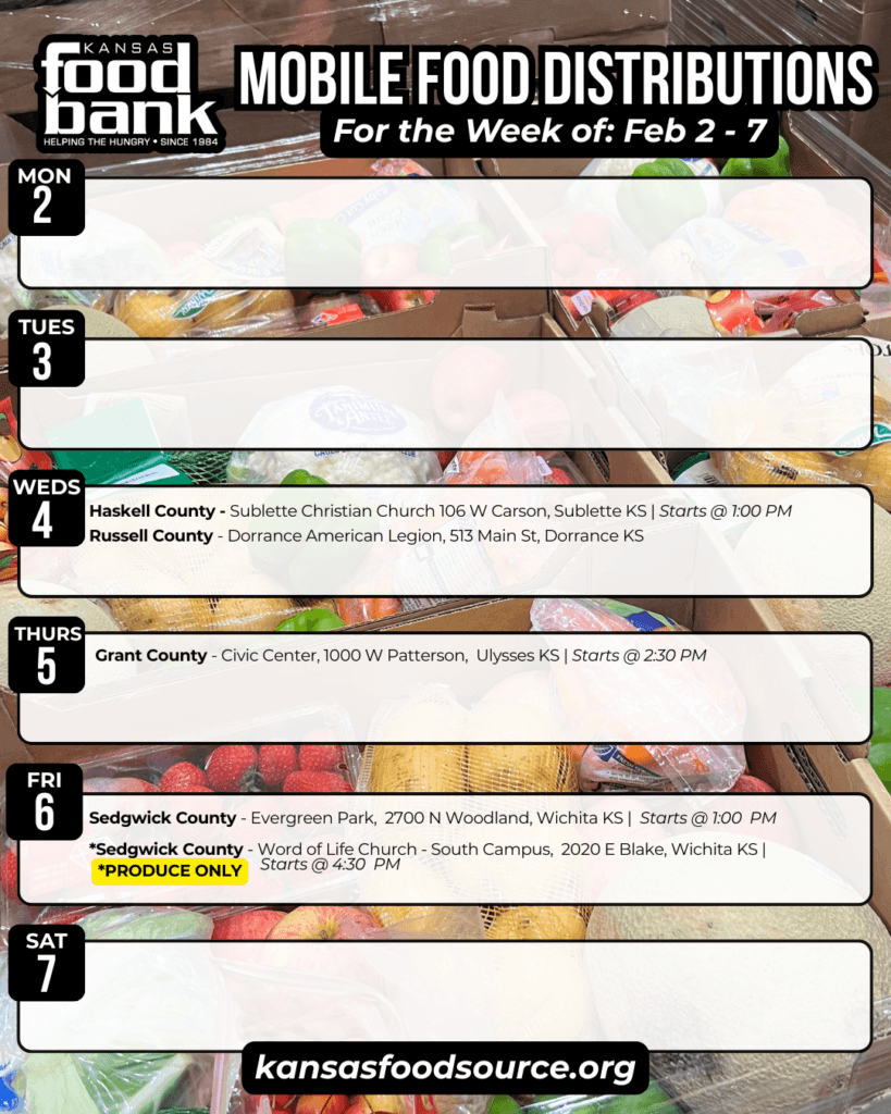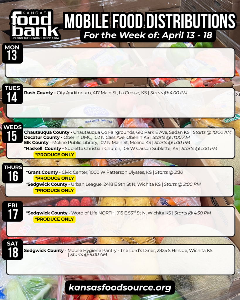 For a complete listing of partner agencies across Kansas, visit kansasfoodsource.org and click on your county to find assistance near you.